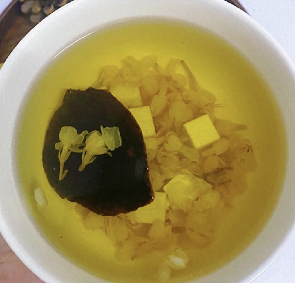 食材:茯苓5克、陳皮1小瓣、干茉莉花少許。