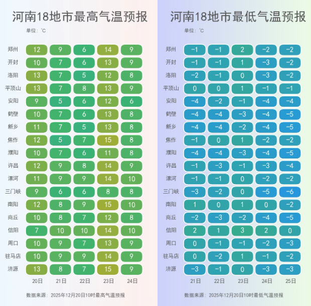 12月20日,洛陽白云山景區、老君山景區迎來降雪。據河南氣象,預計下周一(22日)河南將迎來弱降水。下周一夜里,降水范圍將擴大至全省,不過大部地區依舊是零星小雨,僅西部、西北部高海拔地區預計會飄下雨夾雪或小雪。受兩股冷空氣先后影響,未來一段時間大風將頻繁出沒。在冷空氣的接連打壓下,未來五天河南的氣溫將頻繁出現波動,其中下周二的最高氣溫相對處在高位,大部地區在10℃~15℃,其余時間僅有個位數。最低氣溫則會持續低迷,基本都在冰點以下。