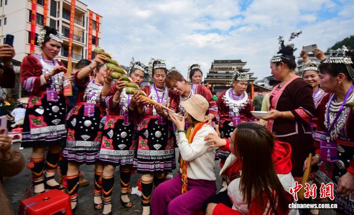 圖為眾多游客前來體驗侗年節。于琳鈺 攝