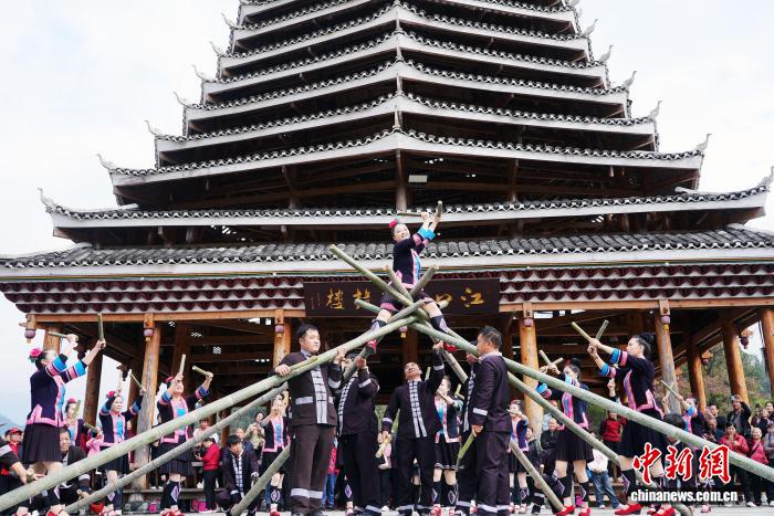 圖為當地侗族同胞在表演節目。陸恒江 攝