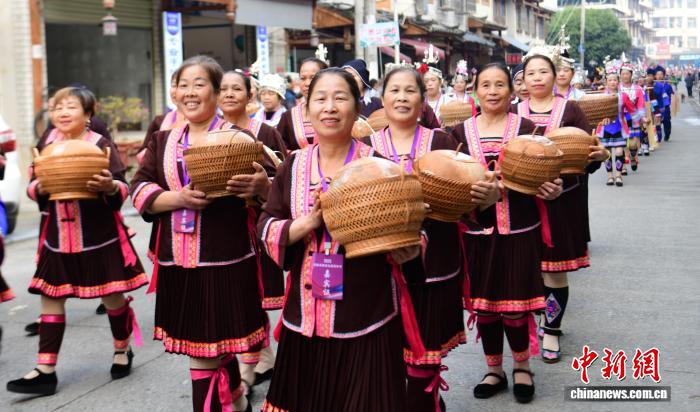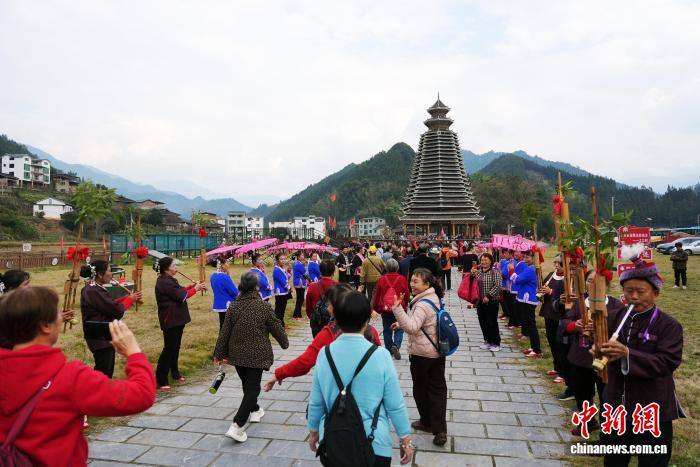 圖為當地侗族同胞與來自湖南通道、柳州三江等地的侗族同胞歡聚一堂,開展民俗巡游。陸恒江 攝