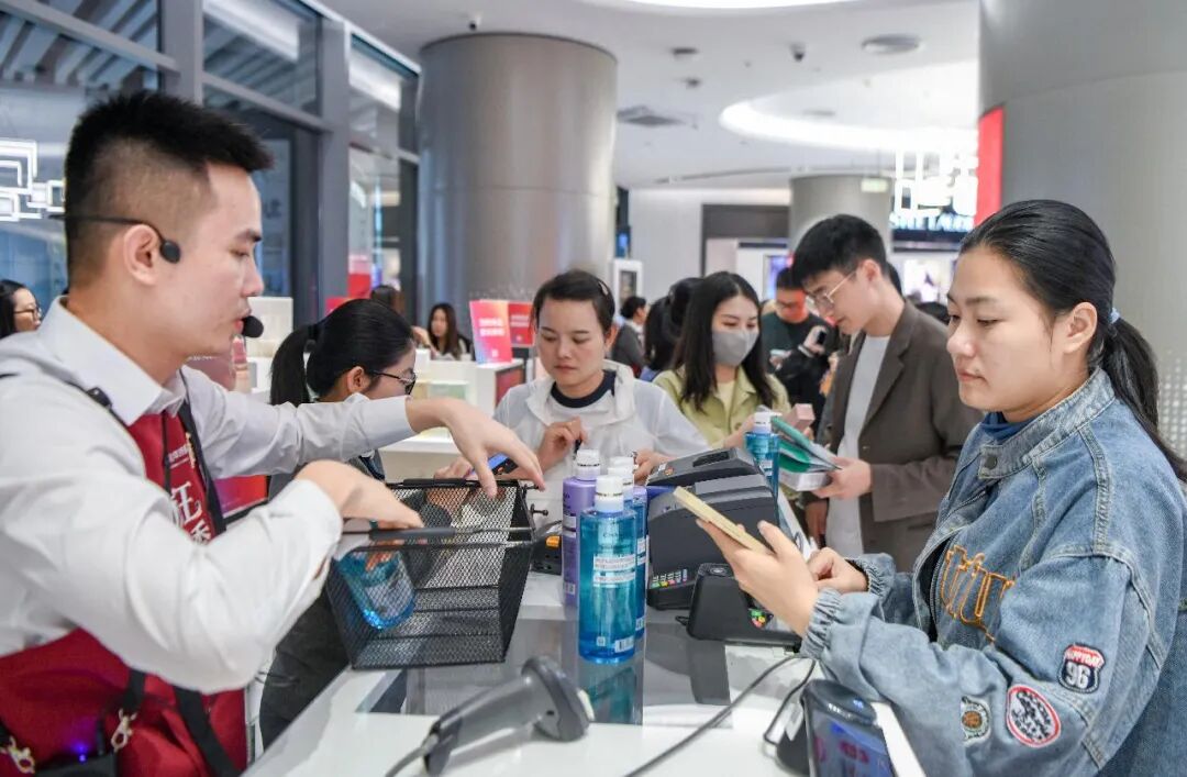 2025年12月18日,海南自由貿易港迎來全島封關啟動的歷史性時刻,海口免稅店迎來消費熱潮。蘇弼坤 攝