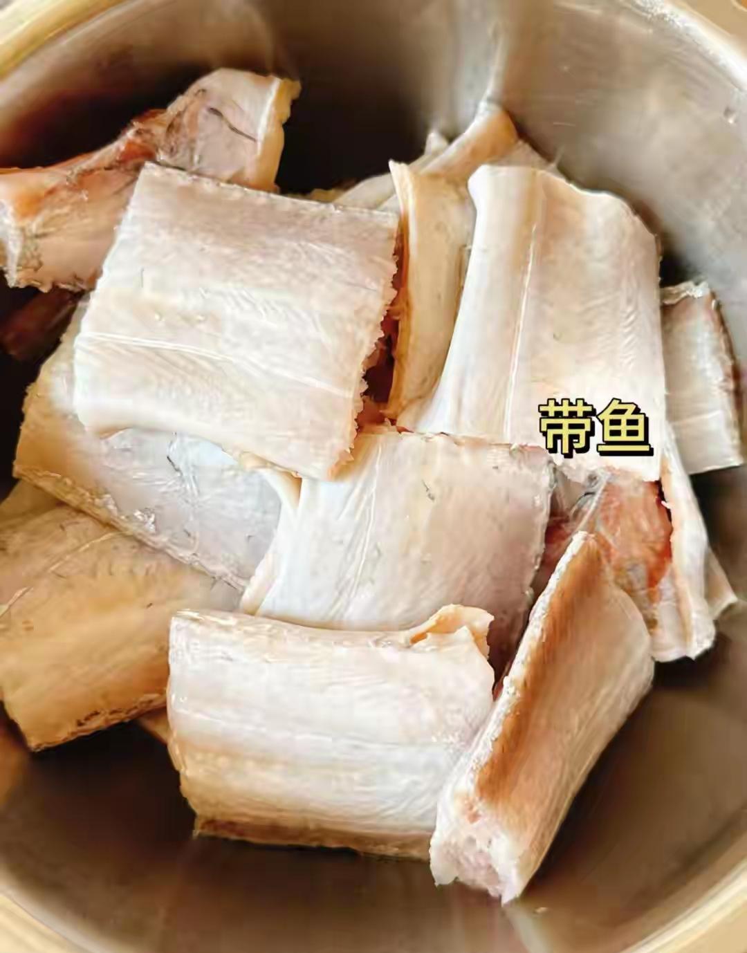 帶魚要選國產的窄帶魚,肉厚味鮮。收拾干凈切段,用廚房紙吸干水分。表面劃幾刀,方便入味。