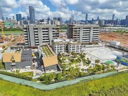 河套香港園區(qū)第一期8號濕實驗室大樓(後排左)、9號濕實驗室大樓(後排右)和人才公寓(前排右)已全面落成。孫東網誌圖片