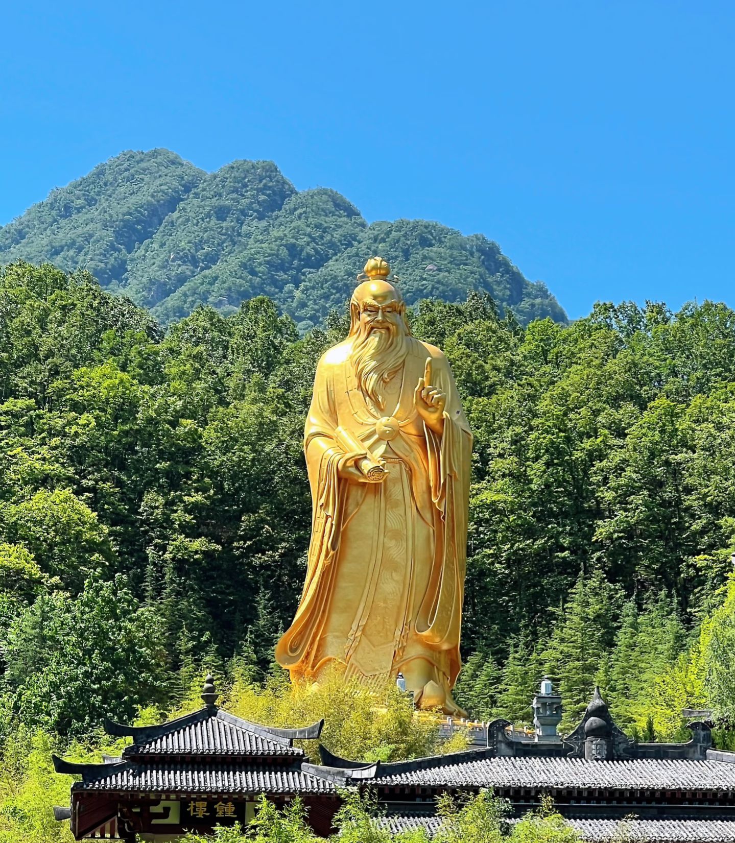 天下第一老子銅像,屹立于在河南省的老君山上,整座銅像高達59米,銅身38米,耗資了3.5億元打造而成的世界第一#?大神像。老子銅像的右手拿著一本《道德經》,代表了他道家的思想,有天有地,無奇不有,普化眾生。左手中的食指指向天空,代表了“道”有探索真理之意“德”應遵循世間萬物規律。