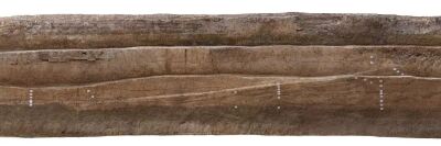 發(fā)掘確定,發(fā)掘區(qū)內(nèi)的阿房宮臺基下分布著連續(xù)的黑色淤泥,之下為黃色生土,淤泥中僅見數(shù)枚殘碎的新石器時代陶片,表明在阿房宮營建之前的史前時代該地曾有人類活動。從堆積情況看,淤泥底部呈南高北低的坡狀分布,夯土之下的淤泥厚0.5~0.6米。