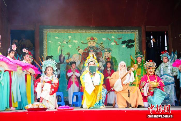 12月21日,浙江省臺州市三門縣亭旁鎮楊家村上演祝壽戲。金鴻宇 攝