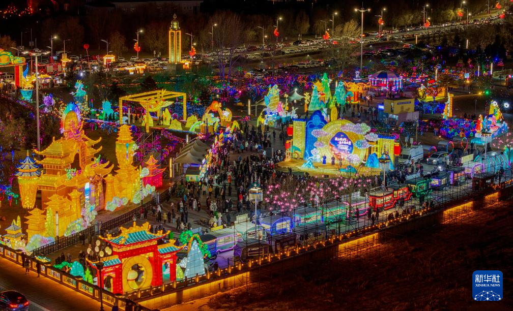12月20日,內蒙古興安盟科爾沁右翼前旗錦繡嘉年華新春燈會開幕,吸引眾多居民和游客前來賞燈。