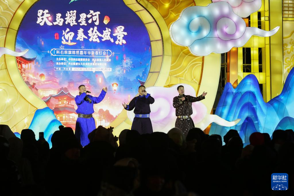 12月20日,當地烏蘭牧騎演員在燈會上表演。