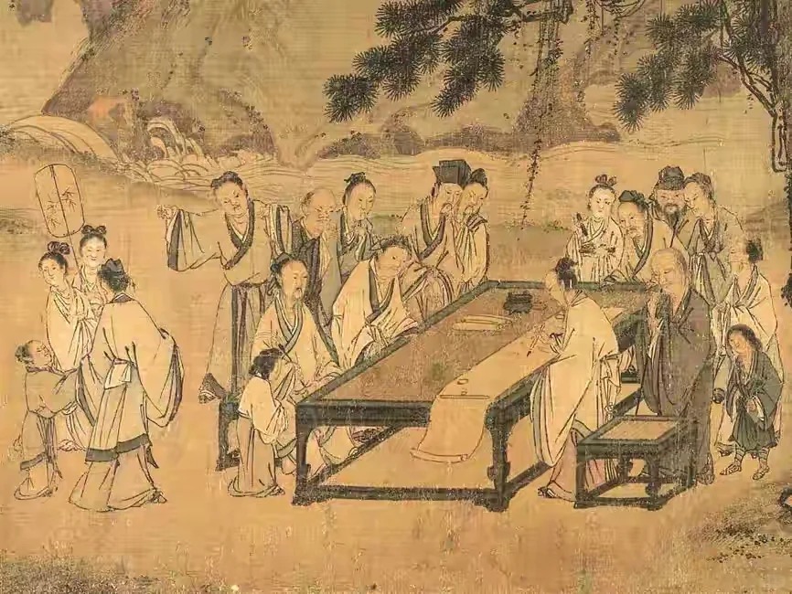 他帶來李公麟新畫的《西園雅集圖》,畫中正是元祐年間蘇軾與文人朋友們聚會的場景。畫上的蘇軾四十余歲,意氣風發,正在揮毫作書。