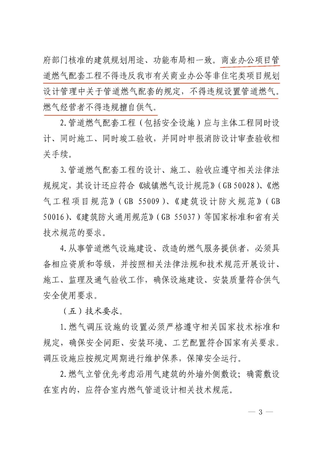 規劃剛性原則:明確用氣場所必須與政府部門核準的建筑規劃用途、功能布局嚴格一致,從源頭杜絕違規配套。商業辦公項目管道燃氣的配套政策,繼續執行《杭州市人民政府辦公廳轉發市建委市規劃局關于進一步規范商業辦公等非住宅類項目規劃設計與管理實施意見的通知》(杭政辦函〔2012〕2號)中明確的配套規定——除集中設置的食堂外,商業辦公類項目不得違規設置廚房和燃氣管道。