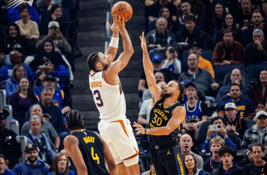 末節(jié)大決戰(zhàn)吉萊斯皮命中三分幫助太陽縮小分差,桑托斯和庫里合砍5分回應(yīng),瑞安鄧恩內(nèi)線殺傷,桑托斯和佩頓合砍5分回應(yīng),此后在布克的帶動(dòng)下,太陽在最后1分鐘追至只差2分,但吉萊斯皮關(guān)鍵三分不中,庫里兩罰全中,吉萊斯皮命中三分續(xù)命,庫里突破殺傷,布克絕平不中,最終勇士以119-116擊敗了太陽。