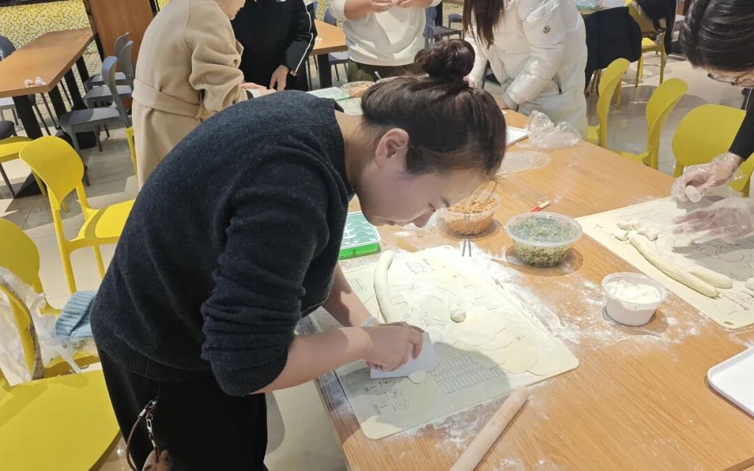 “要多備點辣椒醋,孩子們外賣吃多了,口味重”“餡要調得咸淡適中,符合年輕人口味”,包餃現場,老師們一邊交流技巧,一邊念叨著城寶們的飲食習慣。每一個餃子都裹著輔導員老師的牽掛,每一道褶皺都藏著學校的深情。