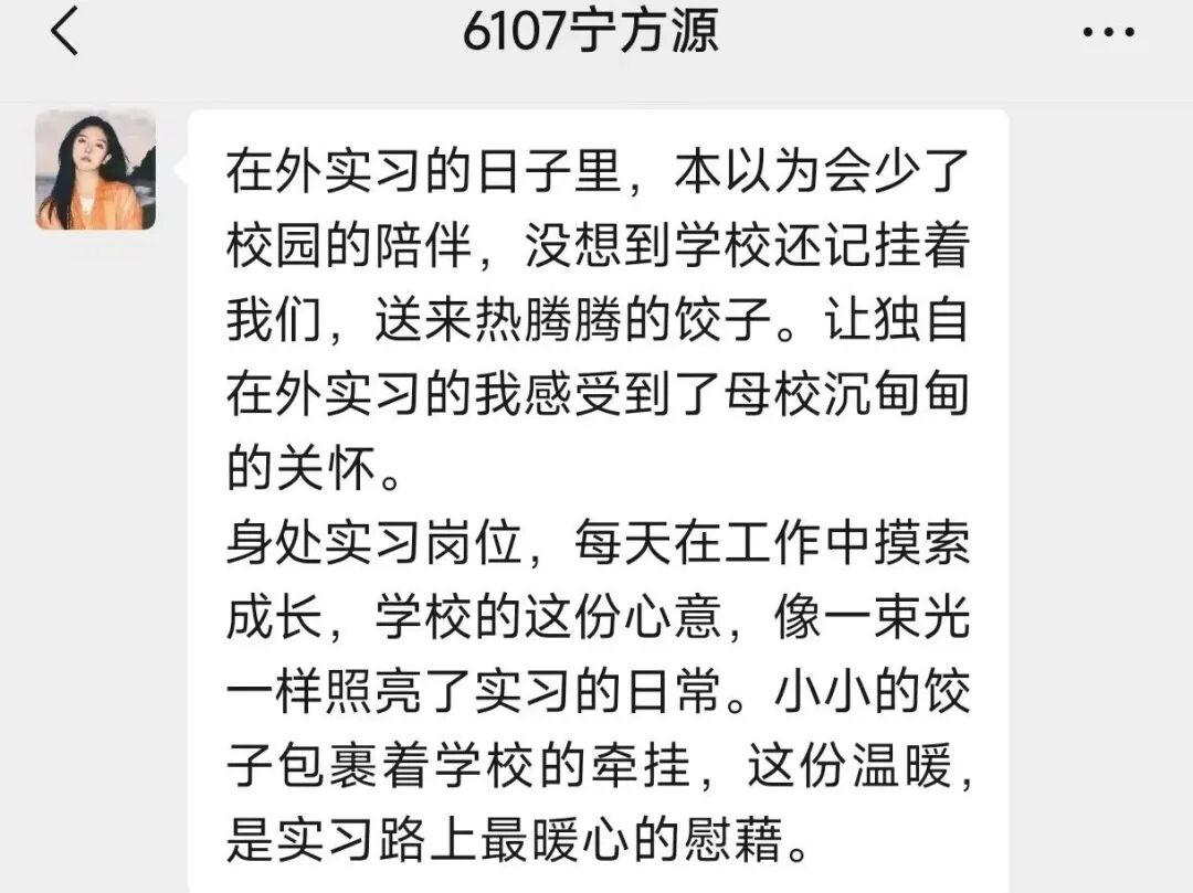 為了保證餃子不放涼,老師們還特意準備了保溫飯盒,生怕寒意沖淡了這份心意。這份餃子,已然成為跨越校園與職場的“愛心接力”,是學校對學子最實在的牽掛。