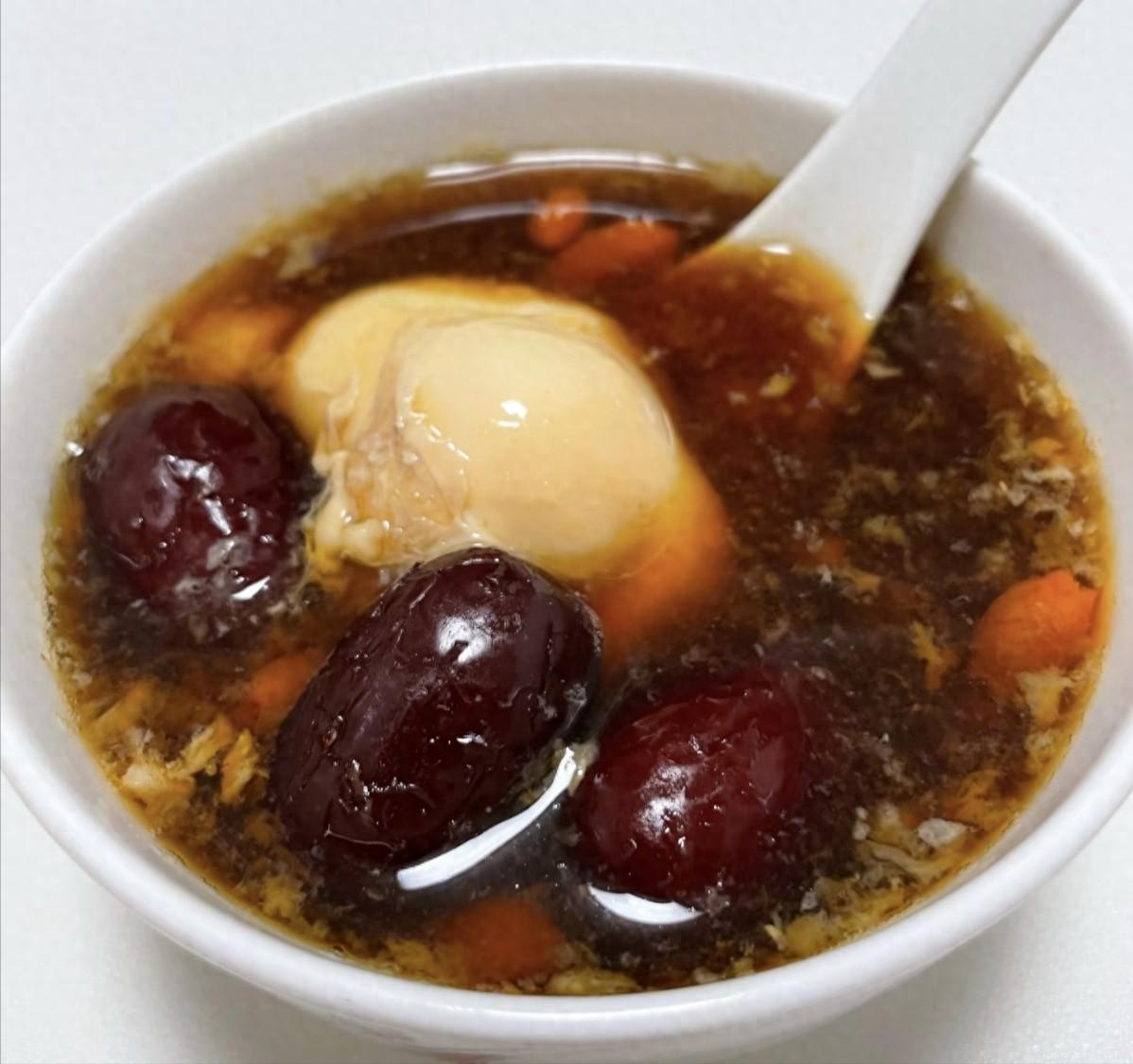 食材:黃芪10克、紅棗6顆、生姜3片、紅糖適量、雞蛋1個、枸杞1小把