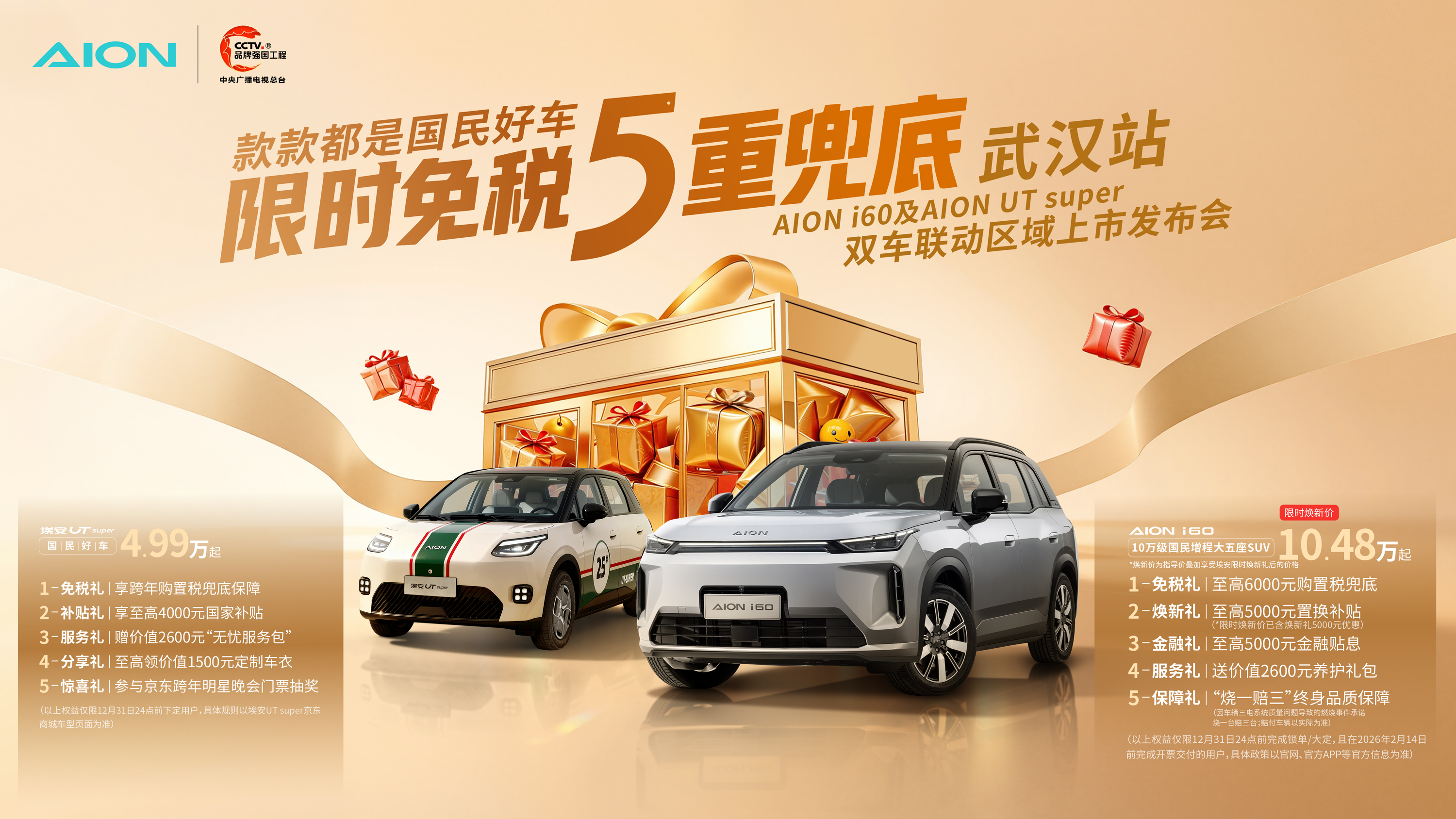 【華中汽車網】2025年12月20日,廣汽埃安"AION i60 & UT Super雙車區域上市發布會"在武漢龍湖濱江天街1F中庭璀璨啟幕。本次發布會以"款款都是國民好車 限時免稅5重兜底"為主題,為江城消費者帶來了一場集科技、時尚與實惠于一體的汽車盛宴。