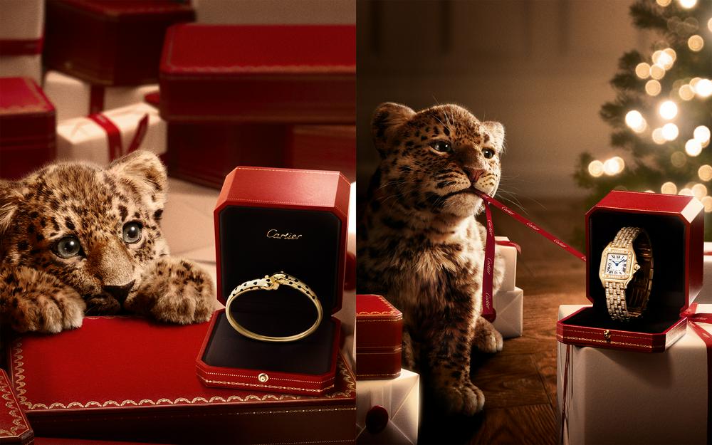 在節日季廣告大片中,卡地亞標志性獵豹化身活潑靈動的小獵豹,穿梭于品牌誕生地——巴黎和平街13號,開啟一段充滿好奇心的禮物之旅,也致敬了品牌自然主義美學與傳奇珠寶傳承。全新Panthère de Cartier系列造型簡約利落,風格大膽不羈,盡顯卡地亞標志性獵豹的蓬勃力量與強烈個性。黃金款手鐲綴以黑漆豹斑,展現出野性與柔美并存的矚目美感。腕表的標志性表鏈采用半鋪鑲設計,明亮式切割圓鉆由密至疏地漸變點綴了表鏈的各個鏈節。白色表盤四周環繞以鑲鉆表圈,與表殼形成鮮明對比。