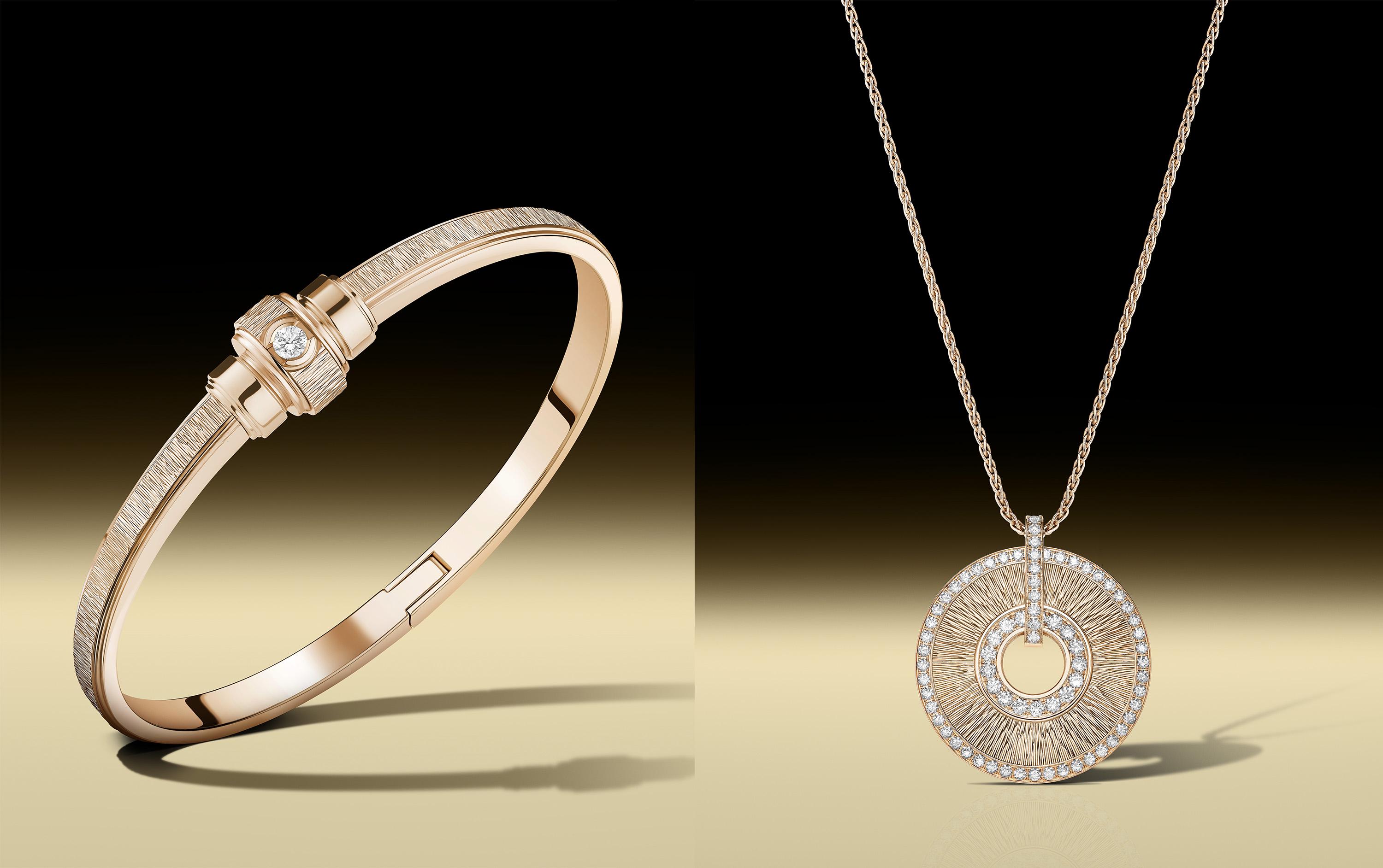 Possession時來運轉系列以轉動寄寓祝福,以璀璨映照歡愉,點亮每一個鎏金閃耀的節日時刻。手鐲以簡約流暢的線條勾勒溫潤氣質,輕巧轉動間,仿佛將節日的幸福與暖意緊緊環繞。項鏈則以18K玫瑰金或白金描繪圓潤輪廓,鑲嵌精心雕琢的明亮式切割鉆石與宮廷式圖騰裝飾,于頸間流轉熠熠光芒。