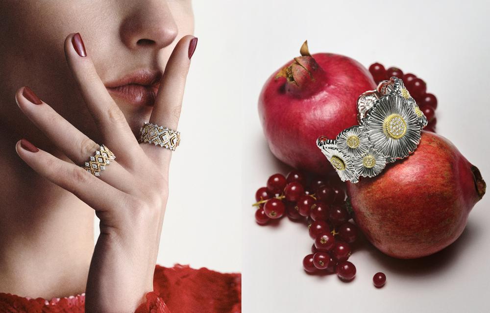 布契拉提全新珠寶臻作為節慶時光注入璀璨新意,Mosaico系列靈感源自古老的拜占庭馬賽克藝術,閃耀鉆石以極具藝術感的大膽排布,鋪陳出流轉光華。戒指、耳飾與手鐲新作以模塊化幾何圖案設計,重釋馬賽克藝術的精致優雅。Blossoms系列作品則栩栩再現花卉的迷人姿態,為節日慶典增添一抹現代韻致。