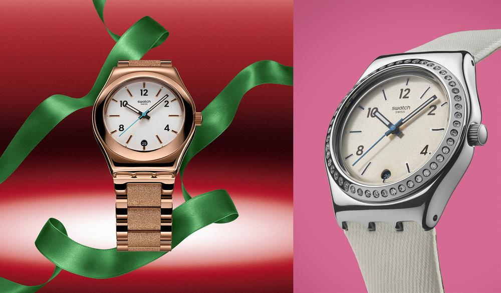 Holiday系列呈獻本季甄選腕表新作,以節日氛圍感色彩搭配不銹鋼材質致意獨一無二的個人魅力。玫瑰之心腕表配備白色表盤,飾以黑色印花數字與玫瑰金色時標,6點鐘位置設有日歷顯示,黑色夜光指針與淺藍秒針交織動感節奏。搭配拋光金屬表鏈與玫瑰金色PVD涂層,內側鏈節具有玫瑰金色閃光效果并配有蝴蝶扣。月華之心腕表則以柔和象牙色表盤搭配水晶鑲飾表圈,6點鐘位置同樣設有日歷顯示,白色皮革表帶搭配以金屬表扣。
