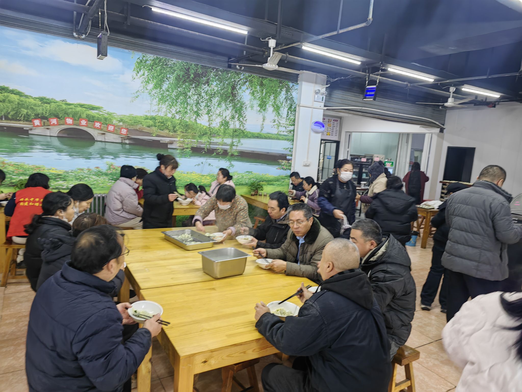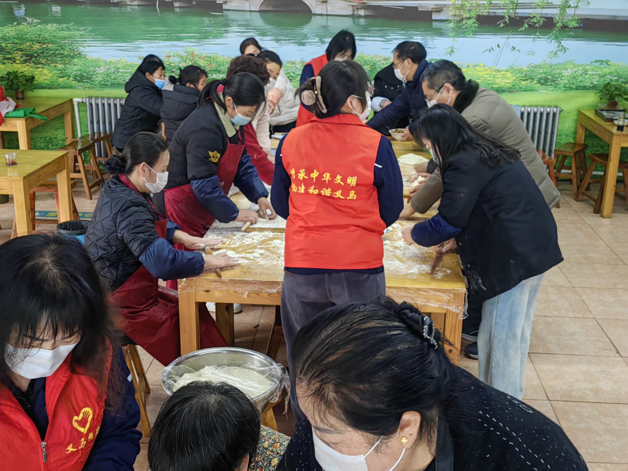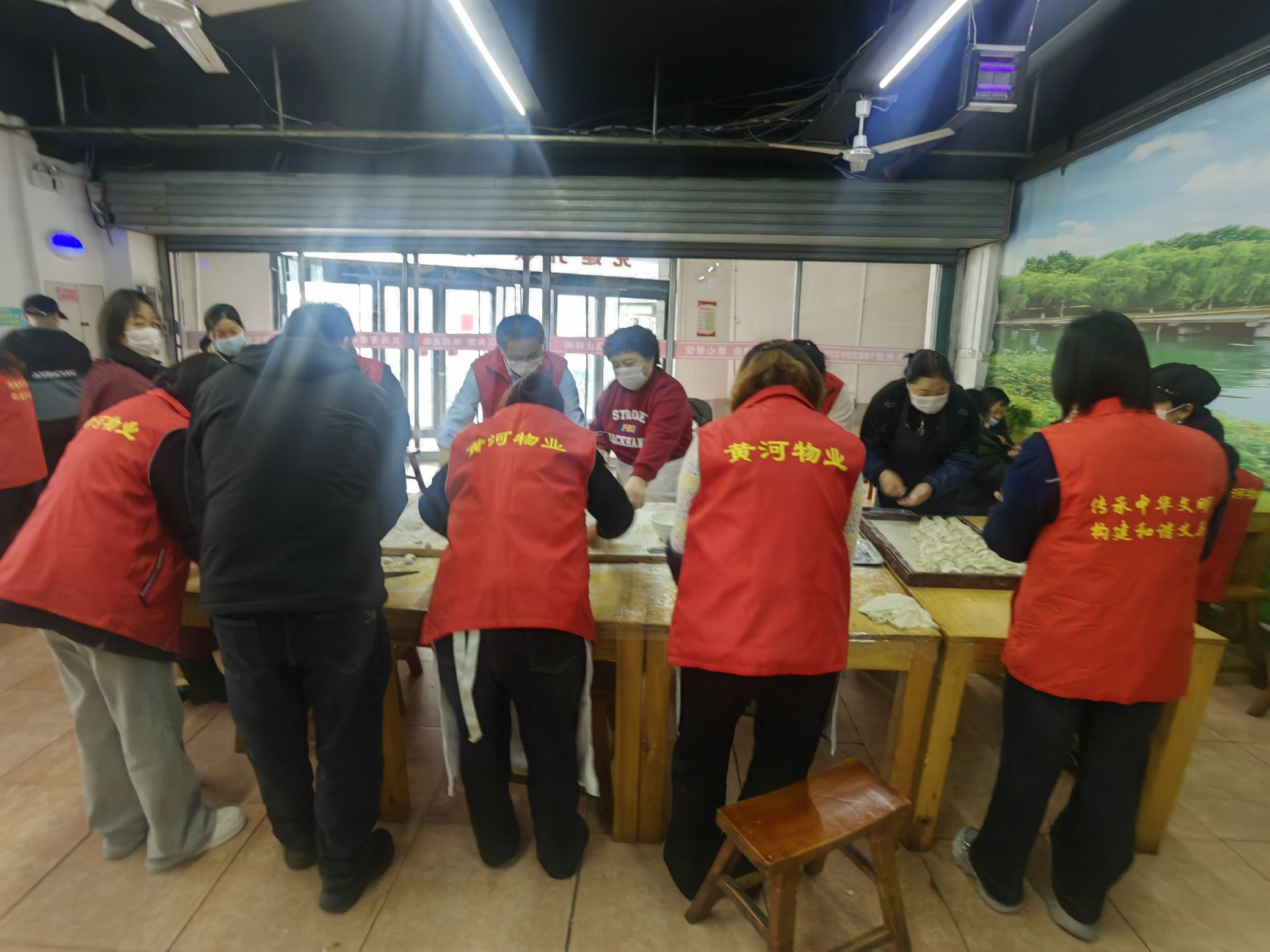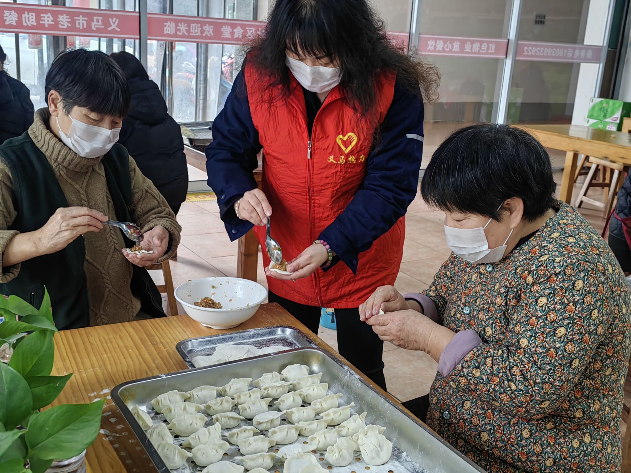 12月21日,鴻慶社區(qū)食堂的冬至餃子??有志愿者的身影