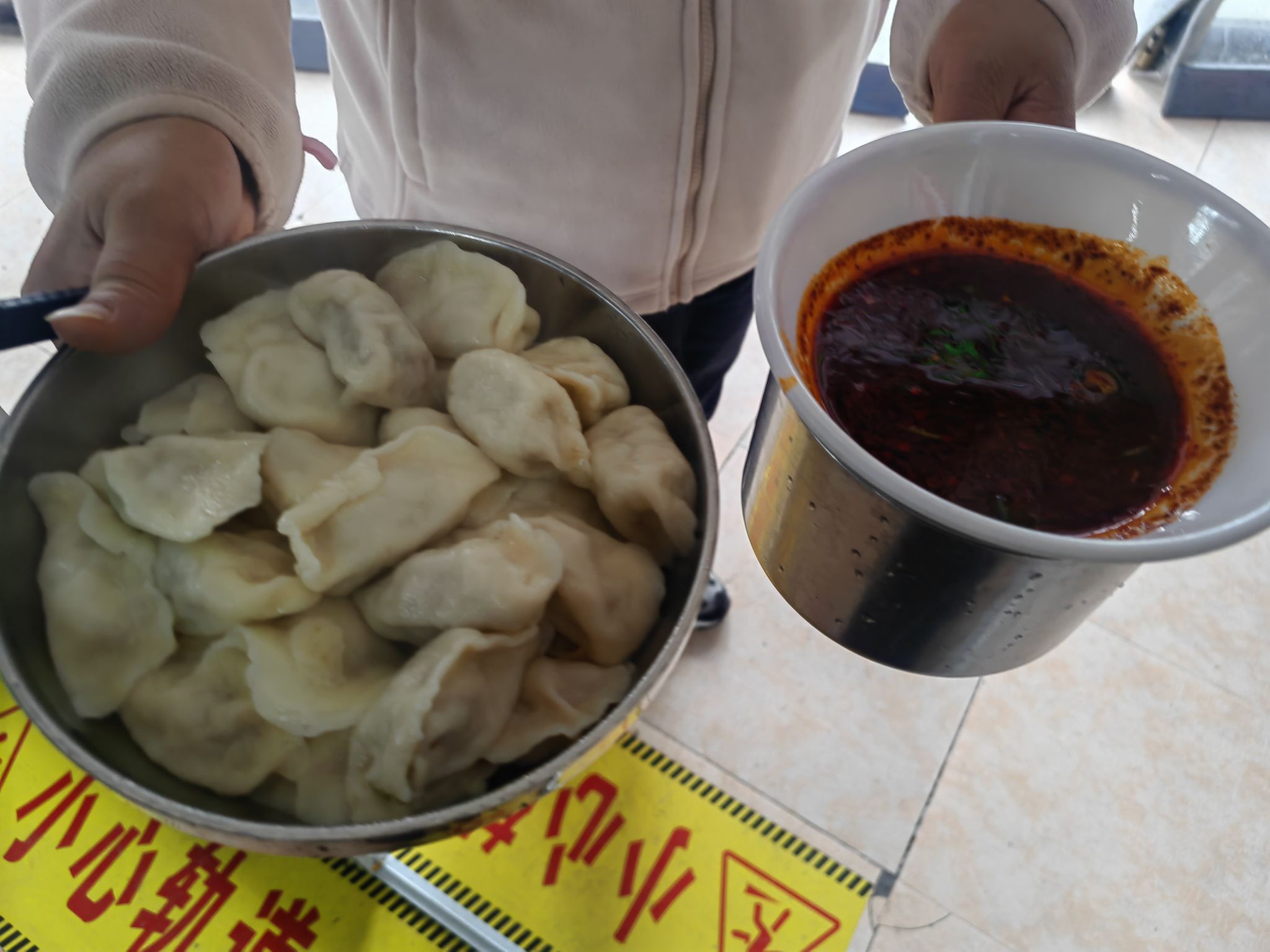 第一鍋餃子??是送給路上搶修暖氣的工人送的。