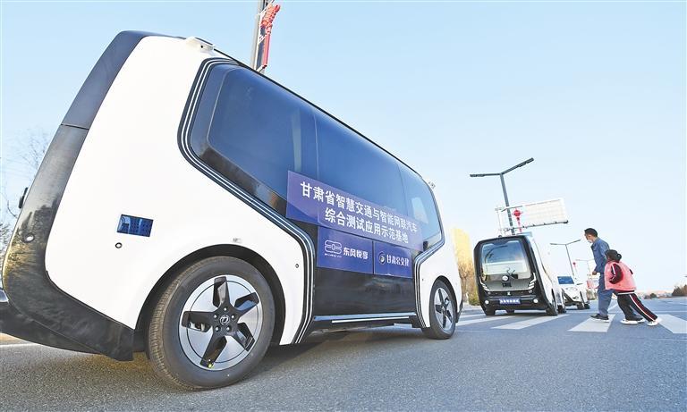 蘭州新區自動駕駛動態體驗車在“城市開放道路測試區”上路行駛。(記者丁凱)