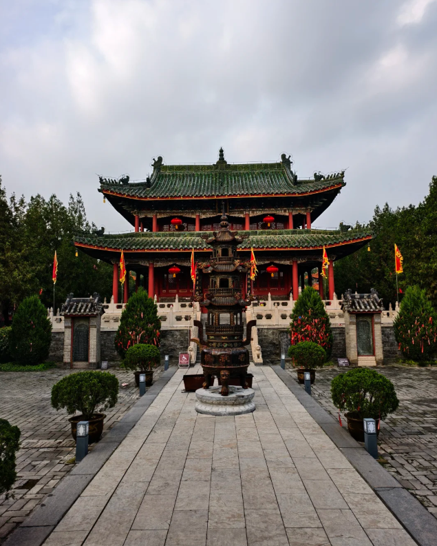 春秋樓最獨特的講述,藏在“兩院英風”的建筑格局中。東院祀關羽,西院祀曹操,兩殿相對,僅一墻之隔。這種罕見的并祀打破了單一聲部的歷史敘事,形成了奇妙的復調。站在分界線上,向左看是關羽的“義薄云天”,向右看是曹操的“唯才是舉”。導游的講解不偏不倚:“這里紀念的不是對錯,而是兩種價值觀的對話。關羽代表的是民間道義、兄弟承諾;曹操代表的是政治理性、天下胸懷。”聆聽這種對話,會讓人理解歷史的復雜性——忠義不是非黑即白的教條,而是在具體情境中的艱難抉擇。院中那株古柏成了這種對話的見證者。相傳植于明代,樹干扭曲如糾結的思緒,樹冠卻分成兩枝,一枝伸向關羽殿,一枝傾向曹操祠。這棵樹本身就是一部植物寫成的歷史哲學。四、當代回響:忠義精神的現代轉譯