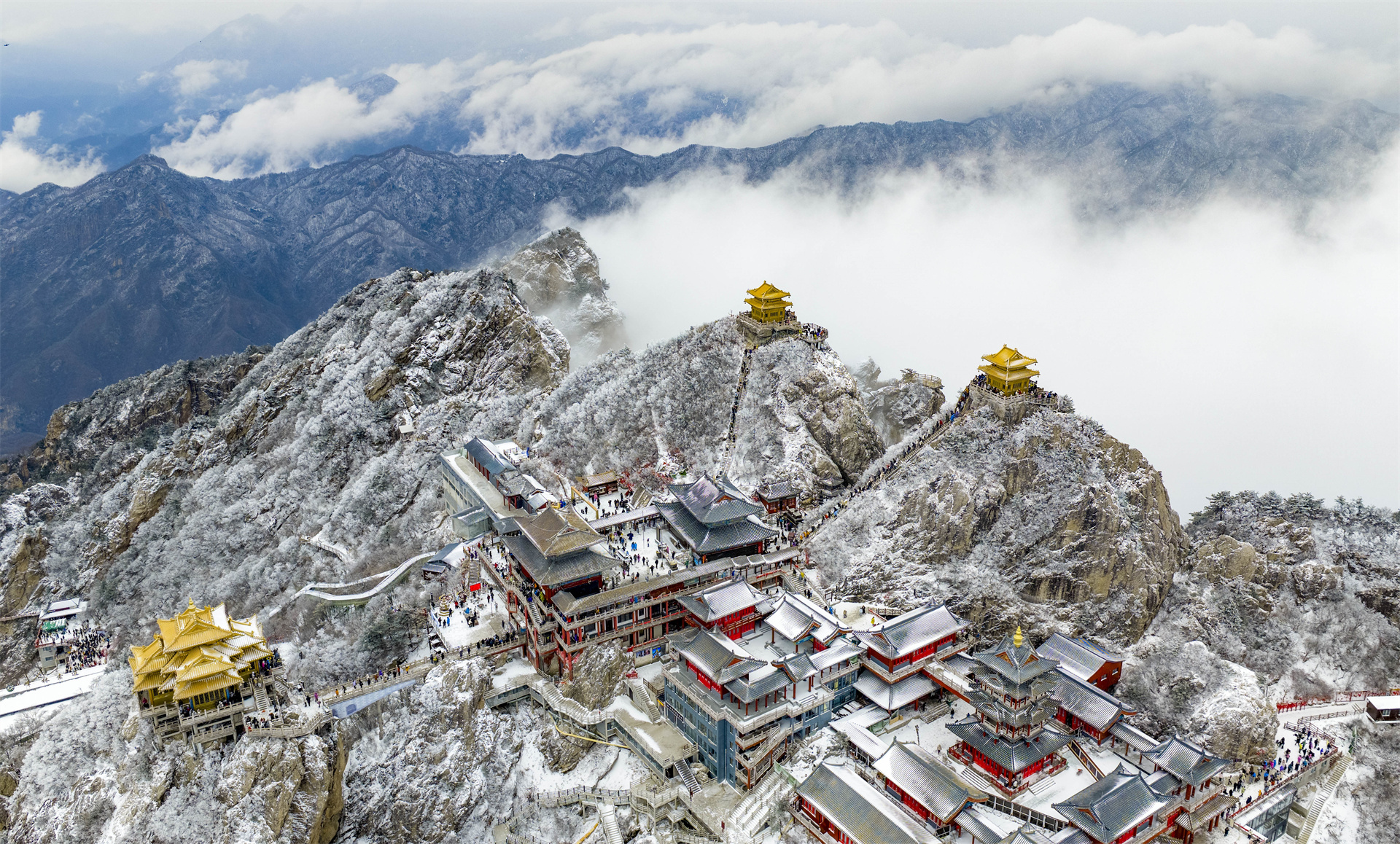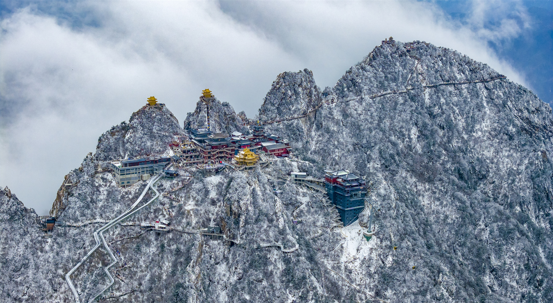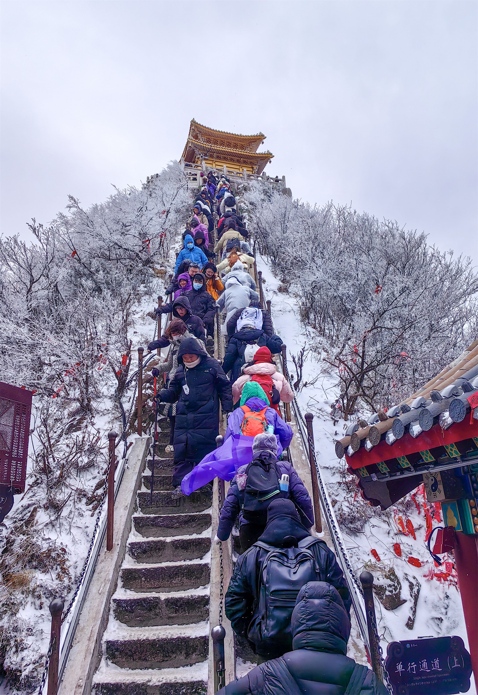 12月20日,洛陽(yáng)市欒川縣雪后的老君山景美如畫(huà),吸引眾多游客前來(lái)拍照打卡。