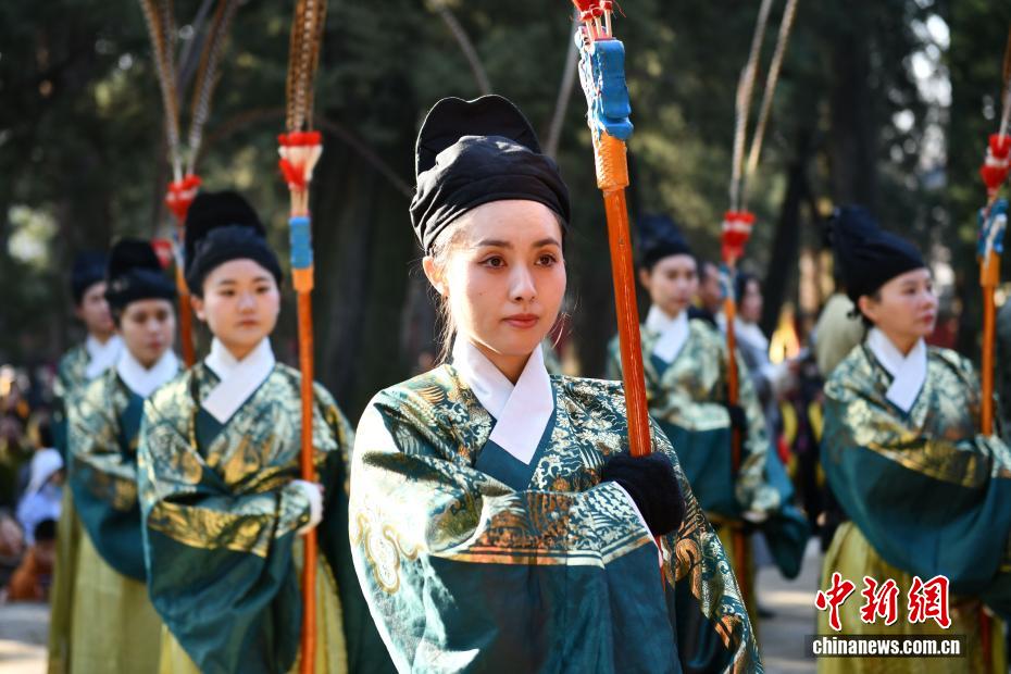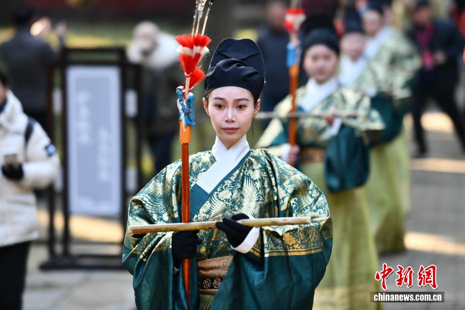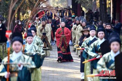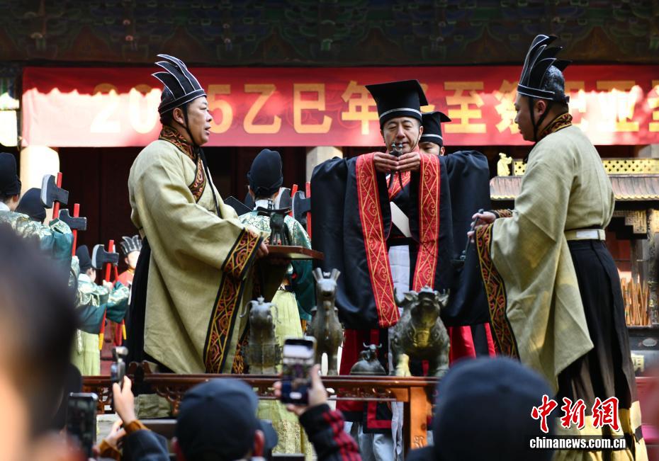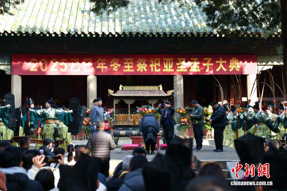 12月21日,山東鄒城,乙巳年冬至祭祀亞圣孟子大典舉行。圖為儀式現場。自2014年鄒城市民間恢復冬至祭孟大典以來,每年冬至日,各界人士都會齊聚鄒城共同舉行祭孟大典。