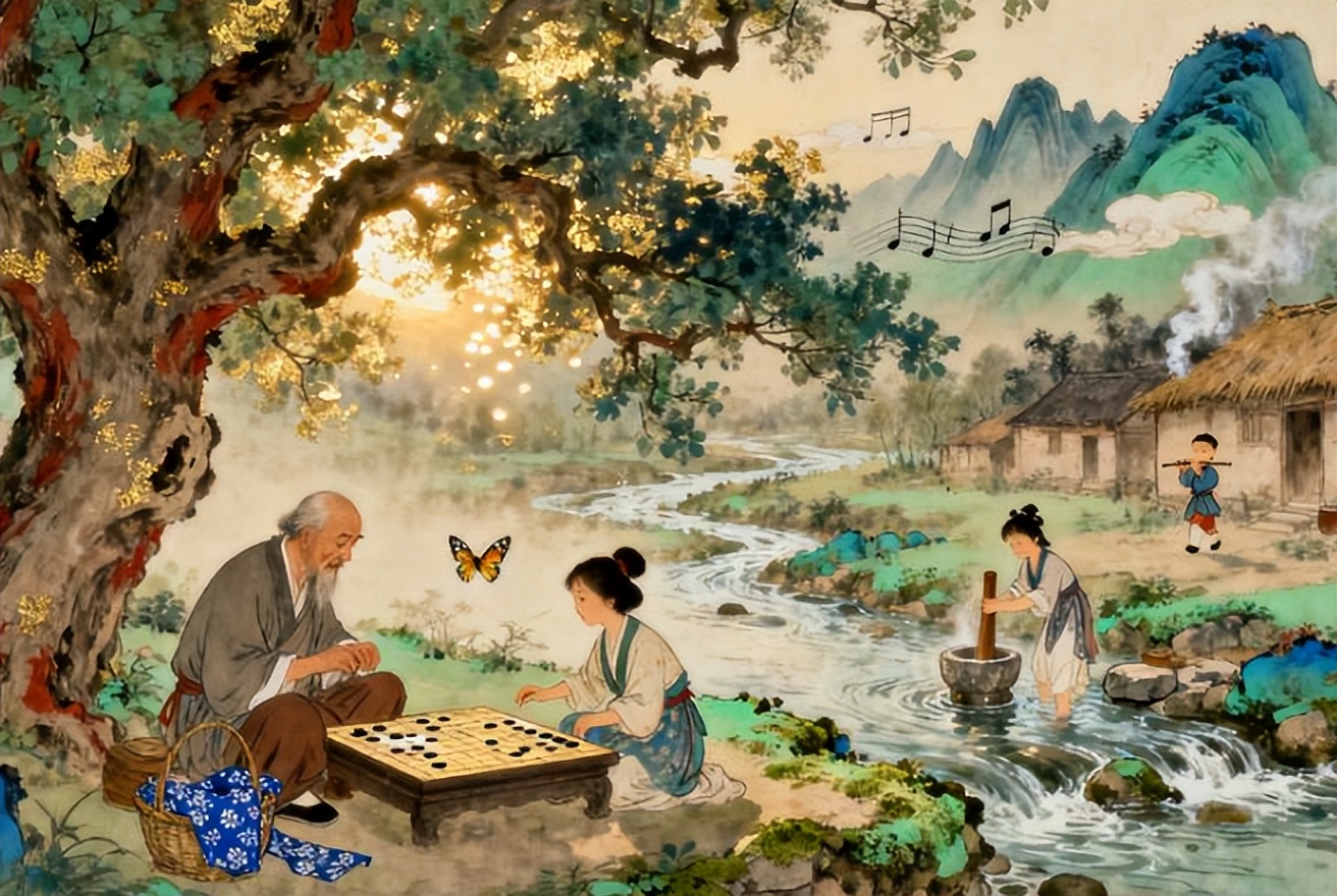 清風(fēng)山下有個(gè)叫 “清風(fēng)村” 的村落。村子依山傍水,村前一條小溪潺潺流過(guò),溪邊的老槐樹(shù)下,常年聚集著下棋的老者、納鞋底的婦人,還有一群追著蝴蝶跑的孩童,日子過(guò)得像溪水里的鵝卵石,溫潤(rùn)又平靜。