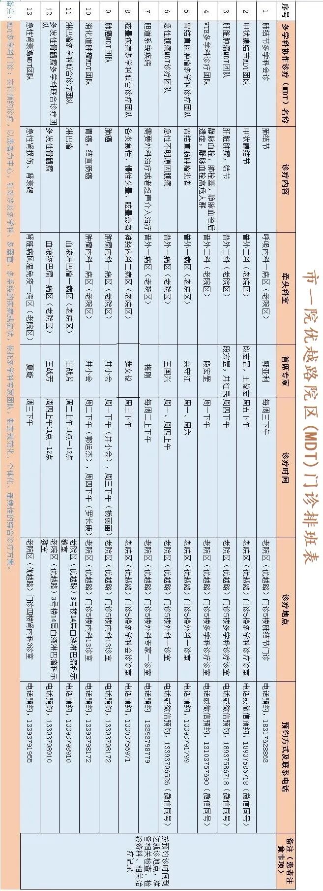 ? 多學(xué)科(MDT)門診排班 ?