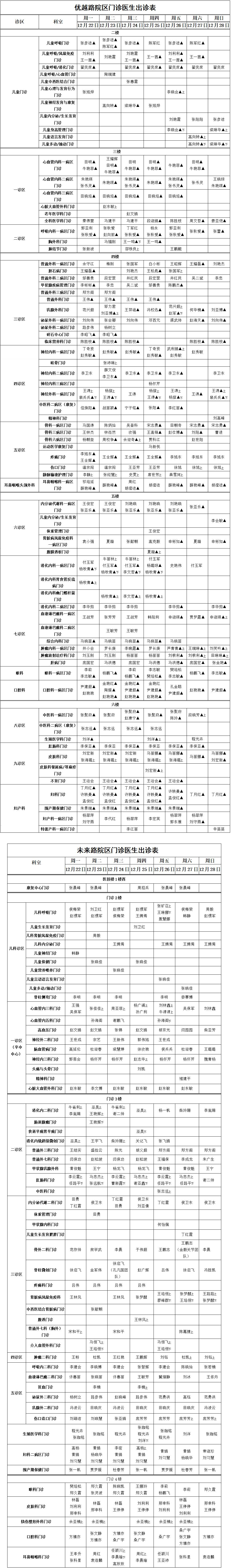 備注:▲表示普通診,醫(yī)師坐診或有變動(dòng),請(qǐng)以當(dāng)日安排為準(zhǔn),敬請(qǐng)諒解。