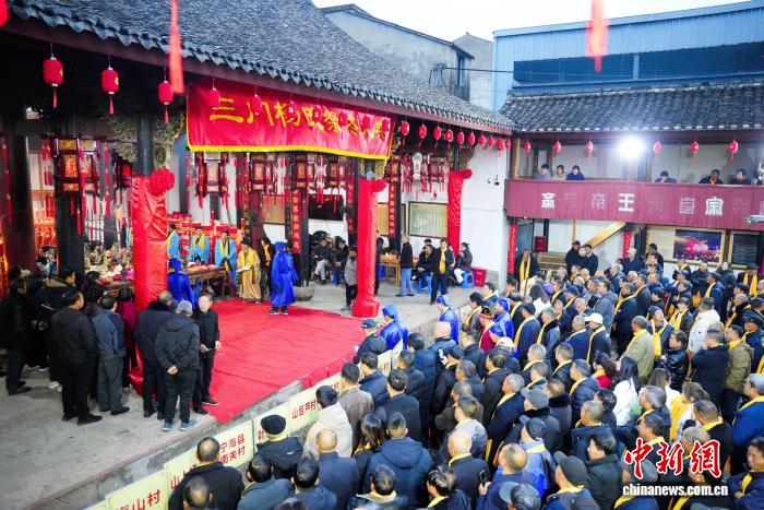 圖為楊家村舉行的祝壽戲表演。金鴻宇 攝