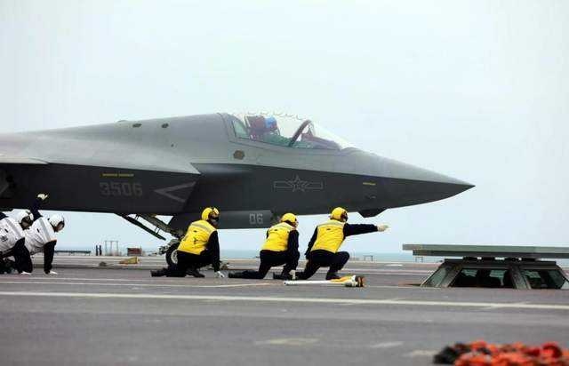 (殲-35在福建艦上起飛)