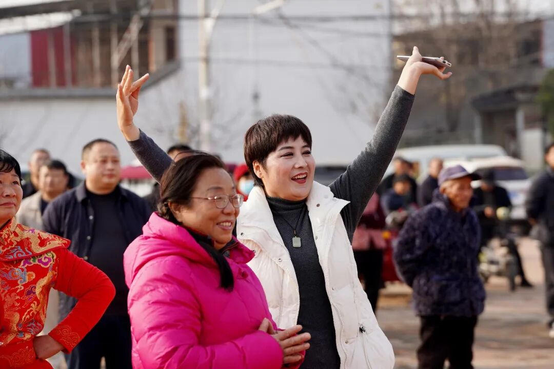 表演現場,臺上臺下互動頻頻,掌聲、喝彩聲此起彼伏,村民們扶老攜幼、駐足圍觀,手機記錄精彩瞬間。