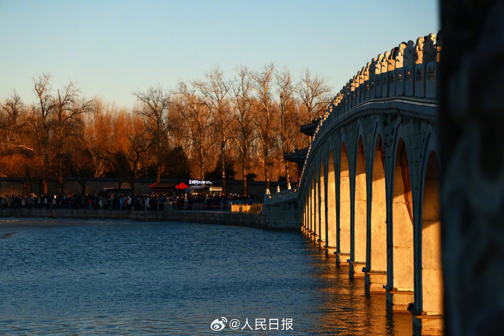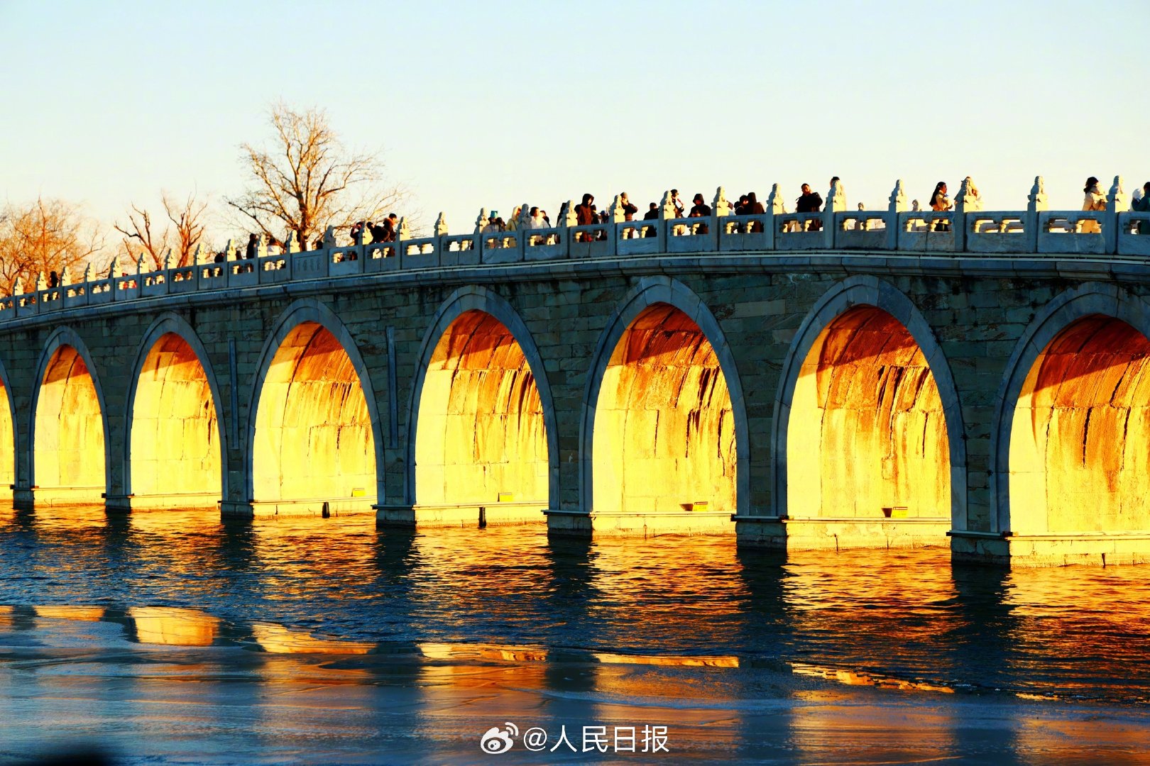 近日,頤和園十七孔橋再現(xiàn)“金光穿洞”景象。頤和園冬日限定金光穿洞,收藏,愿這份美好帶給你喜悅與幸福!