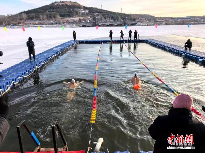 中新網雙鴨山12月21日電(郭林林 張夢雪 孫藝格)21日,“冰超”·雙鴨山市冬泳挑戰賽在雙鴨山市嶺東區定國山水庫燃情開賽。國內百名冬泳愛好者,用速度與激情驅散冬日嚴寒,不僅點燃了游客和雙鴨山市民的參與熱情,更吸引八方游客慕名而來,為現場聚攏了超高人氣。