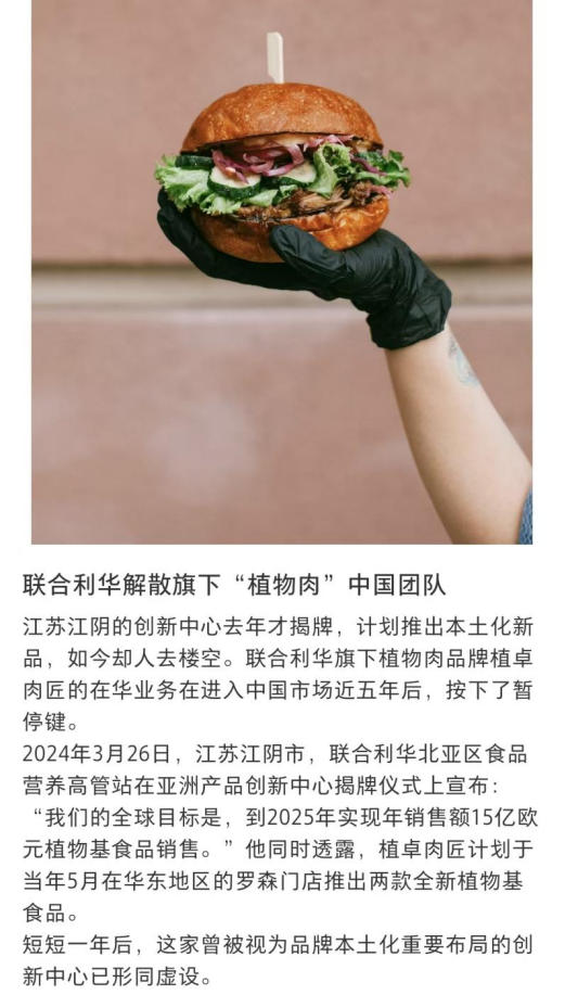 就連老牌食品巨頭的人造肉團隊也偃旗息鼓。(圖/社交平臺截圖)