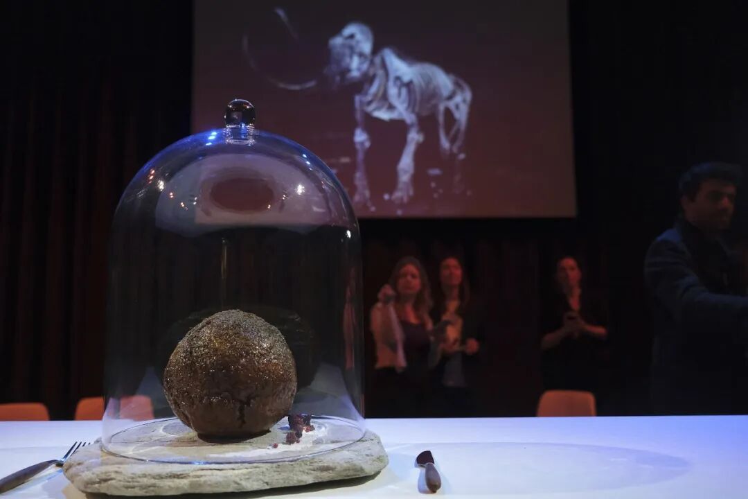 瘋狂的人造肉一出生就打著資本的烙印。2023年3月28日,荷蘭尼莫科學博物館展出了一個使用猛犸象基因序列制成的肉丸。(圖/視覺中國)