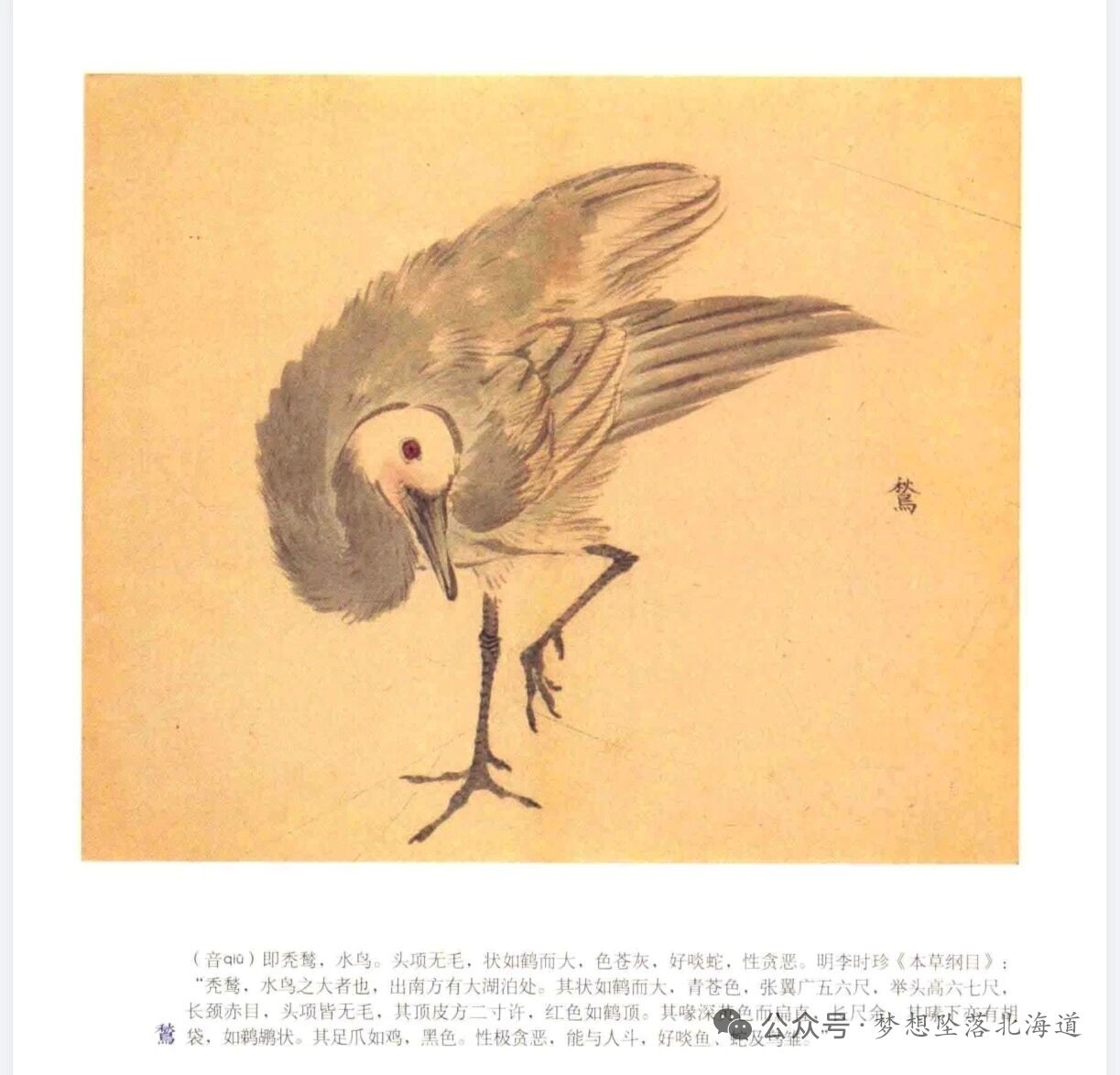明李時珍《本草綱目》:“禿鷲,水鳥之大者也,出南方有大湖泊處。