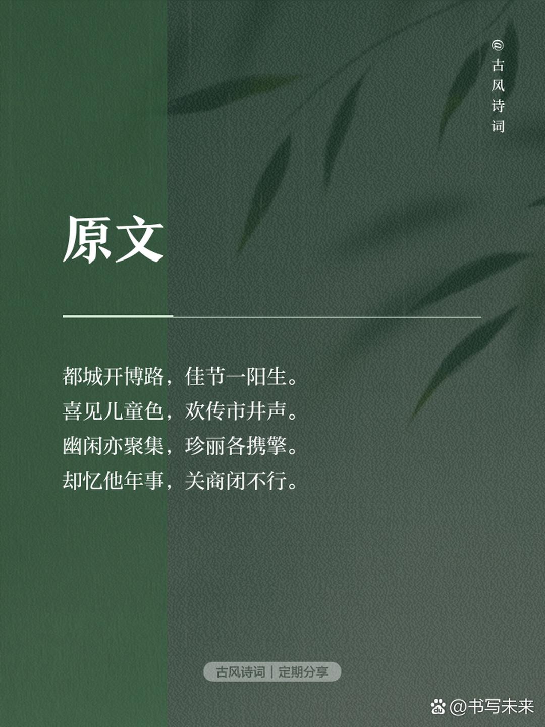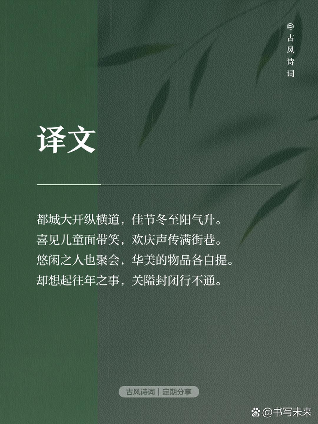 綜觀全詩,王安石沒有直抒變法艱辛的牢騷,也未空談陰陽天道的玄理。他巧妙地將宇宙運行的宏大節律(陽生)、民間節慶的瑣碎歡愉(兒童色、市井聲)、家族倫理的溫暖儀式(聚集攜擎)以及治國理政的深沉典故(關商閉),編織進一個冬至夜的時空之中。在“一陽生”的希冀與“閉不行”的現實之間,在幽獨的自我與歡聚的他人之間,他找到了一個平衡點。