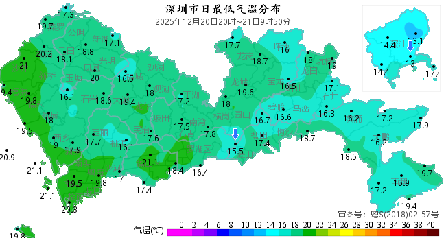 并且常年冬至時節,深圳晝夜溫差加大,我市平均晝夜溫差達可7.3℃;未來一周冷空氣活躍,預計下周四至周五(25-26日)又有新一股冷空氣影響,大家注意及時添加衣物,謹防感冒。