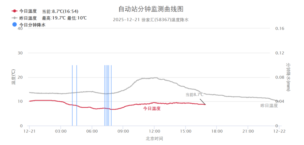 冷空氣今日也應(yīng)景入滬。昨夜今晨,上海飄起秋雨,小雨量級,白天雨水漸止,但云層濃厚,陽光虛弱無力。白天各區(qū)最高氣溫都被壓制在9~10℃,市區(qū)徐家匯站9.5℃,與昨日相差10 ℃,體感穿越兩季。上午風(fēng)力較強(qiáng),下午減弱,上海大風(fēng)藍(lán)色預(yù)警已于今日15時20分解除。