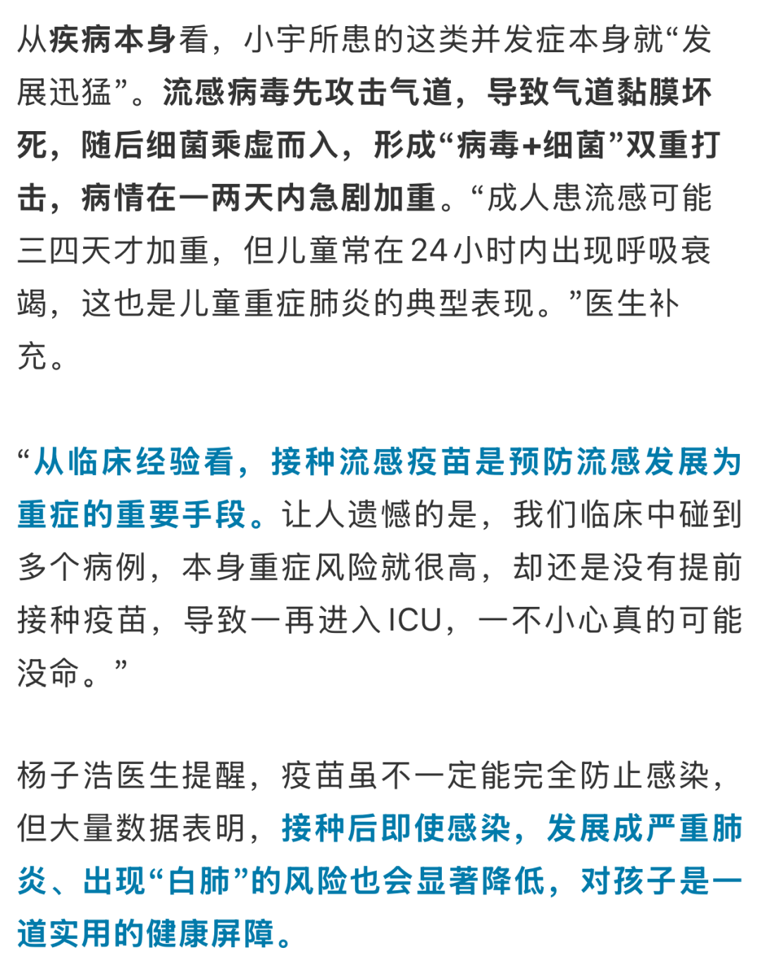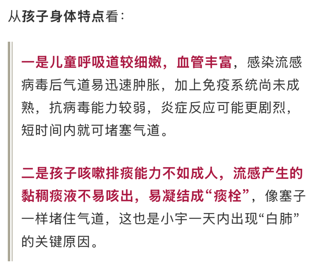很多家長不解,為什么普通流感在孩子身上進展這么快?楊醫(yī)生解釋,這與兒童的生理特點和疾病本身的嚴重性有關,兩者疊加顯著增加了重癥風險。