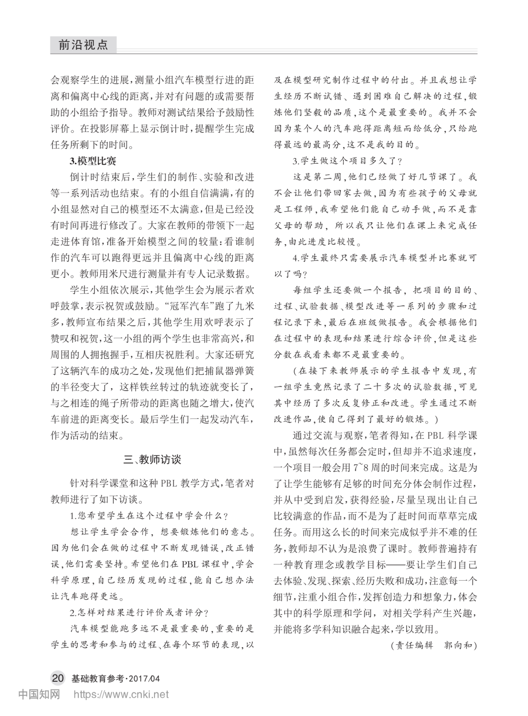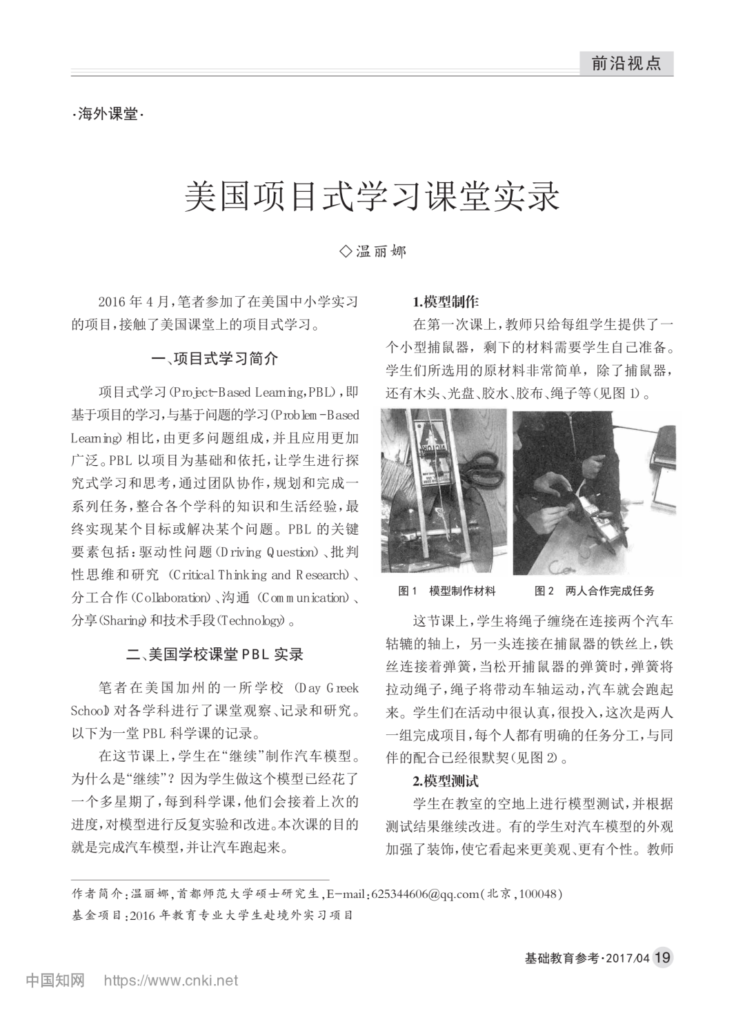 【引用格式】溫麗娜.美國項目式學習課堂實錄[J].基礎教育參考,2017(04):19-20.