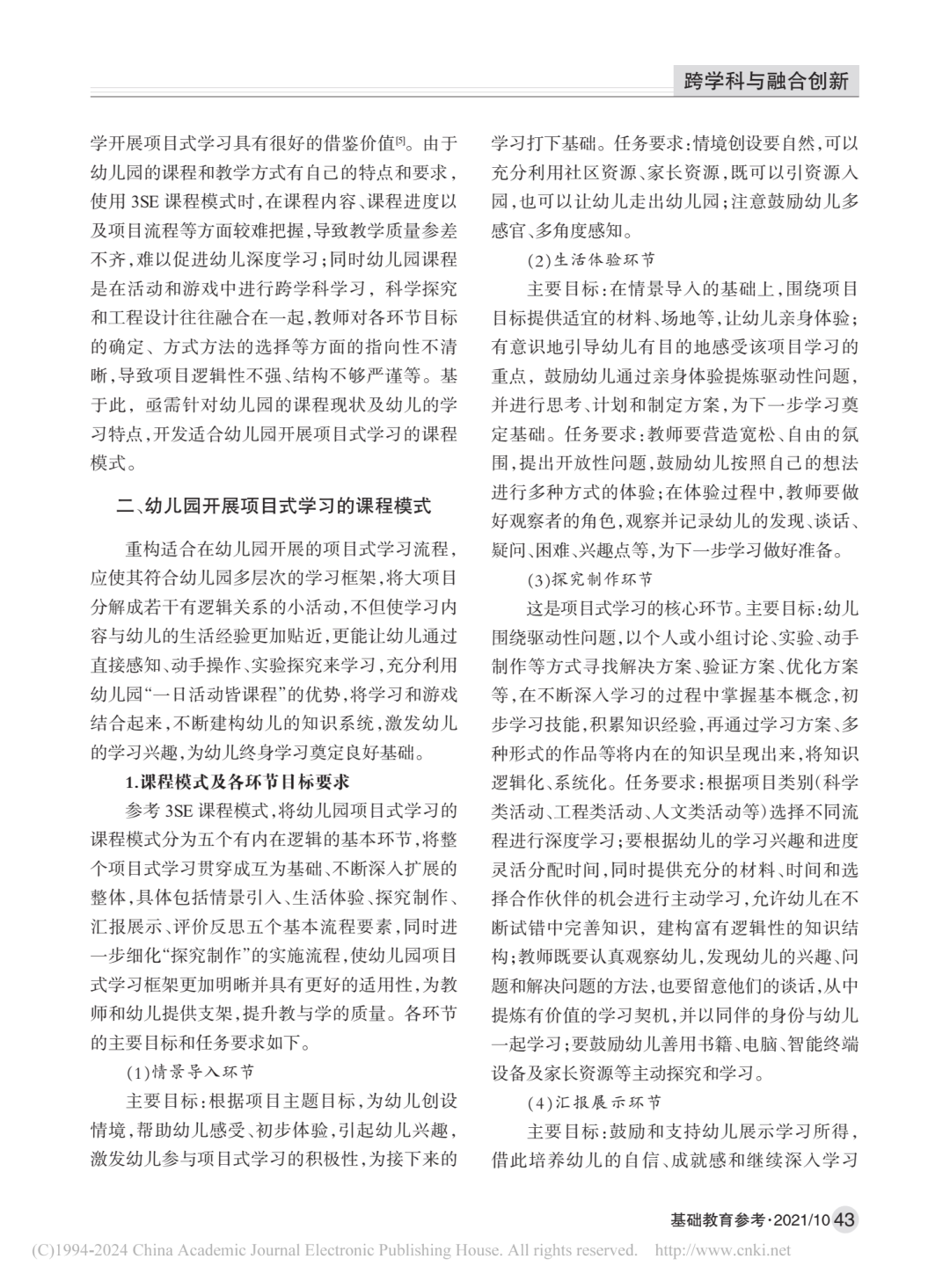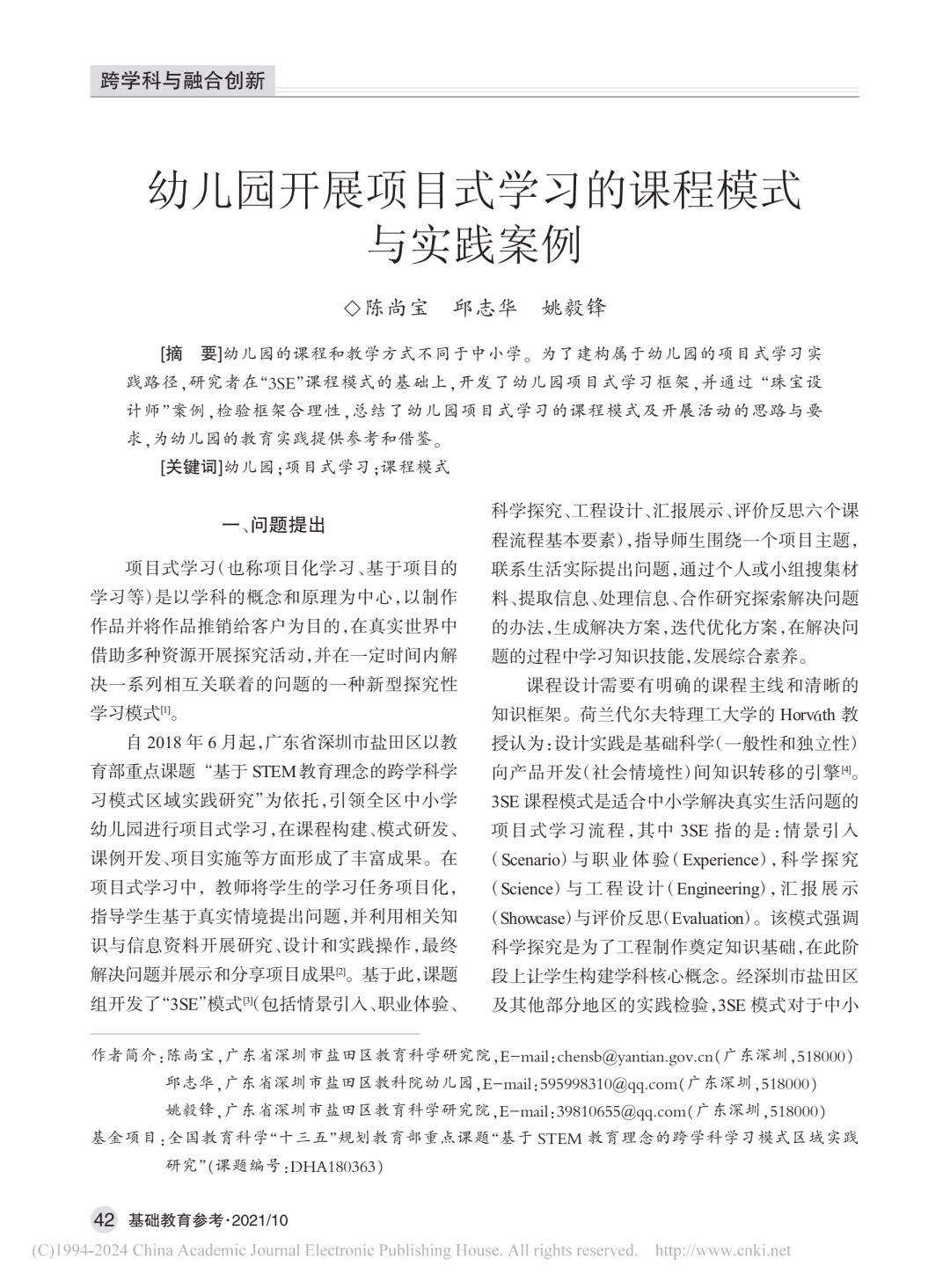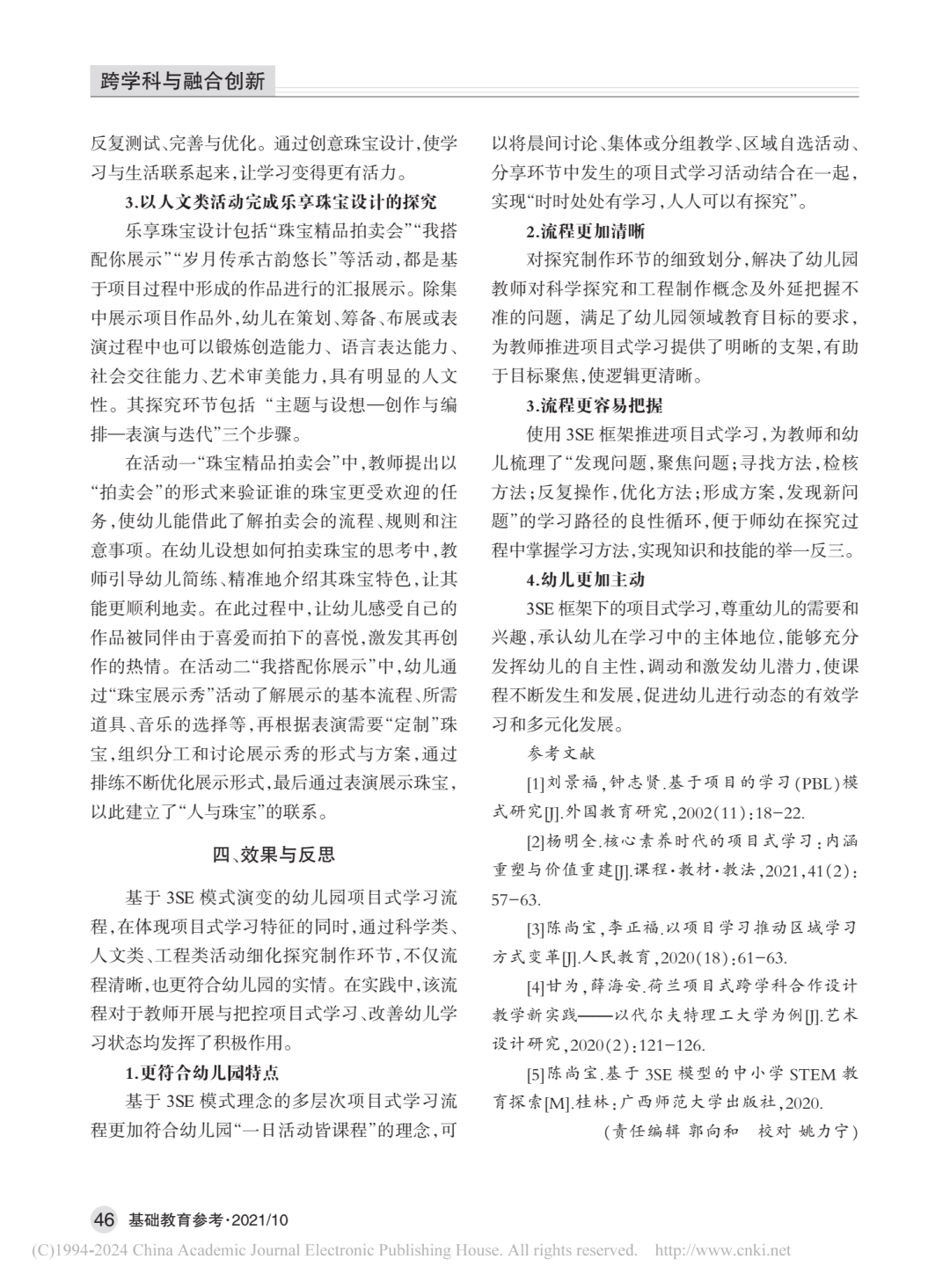 【引用格式】陳尚寶,邱志華,姚毅鋒.幼兒園開展項目式學習的課程模式與實踐案例[J].基礎教育參考,2021(10):42-46.