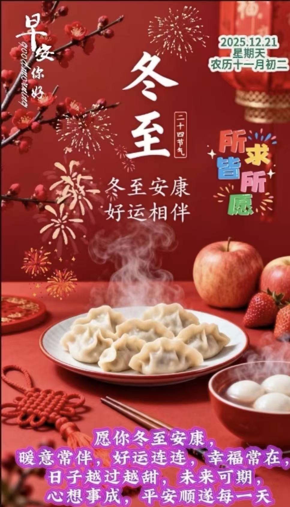祝各位親朋戚友冬至節日愉快!健體安康!家庭幸福!萬事如意!