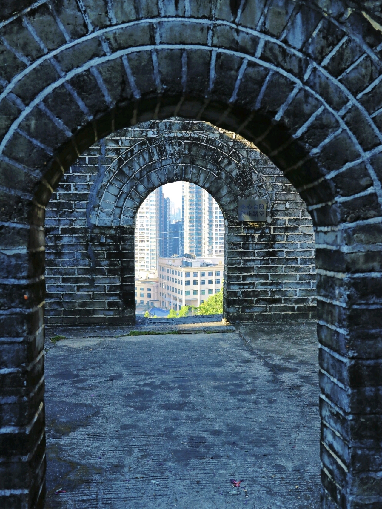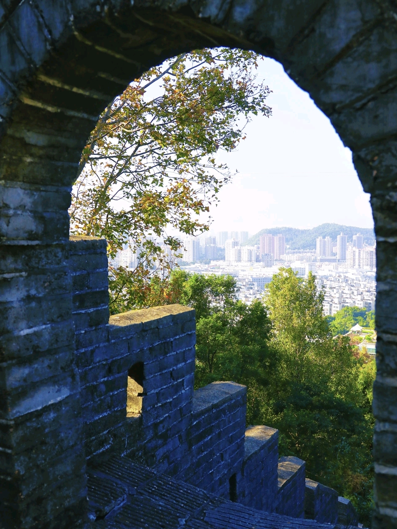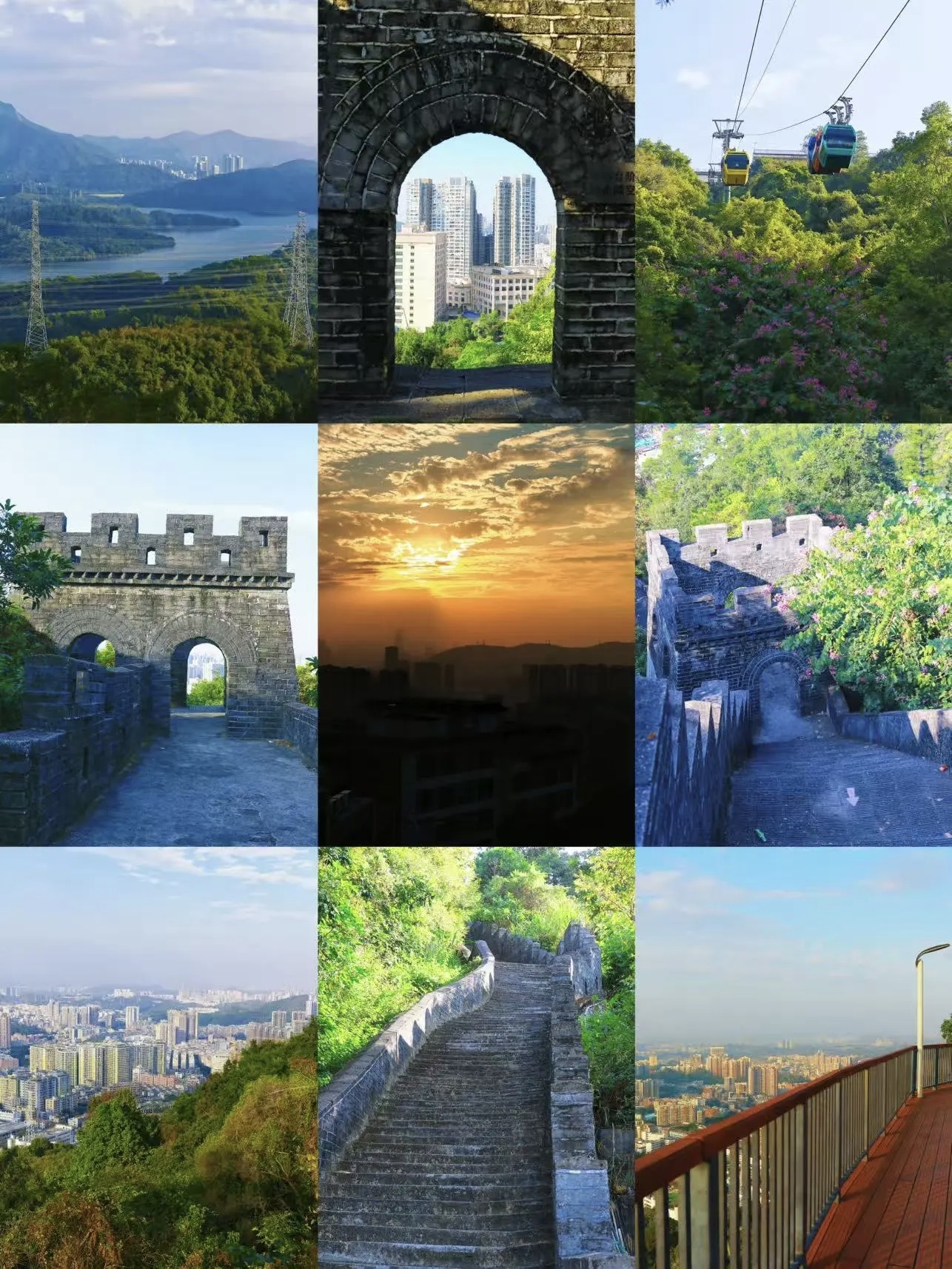 登上小長城,一定要在烽火臺多拍幾張!烽火臺的出入口和窗口堪稱黃金打卡點,站在這里,腳下就是南灣的煙火街景和城市建筑,“南灣之窗” 的畫面瞬間具象化。不管是站在中間拍全身照,還是靠墻凹造型,都能拍出氛圍感滿滿的大片。