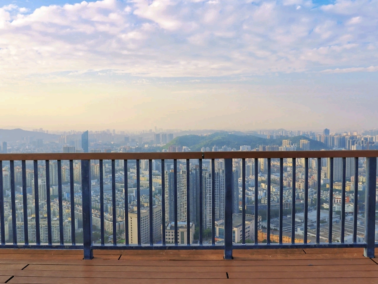 更絕的是,山頂廣場視野開闊,既能遠眺香港新界、近觀深圳水庫與梧桐山,還能捕捉到弘法寺懸浮山腰的獨特景致,山水與城林相映,堪稱深圳版“千島湖”。